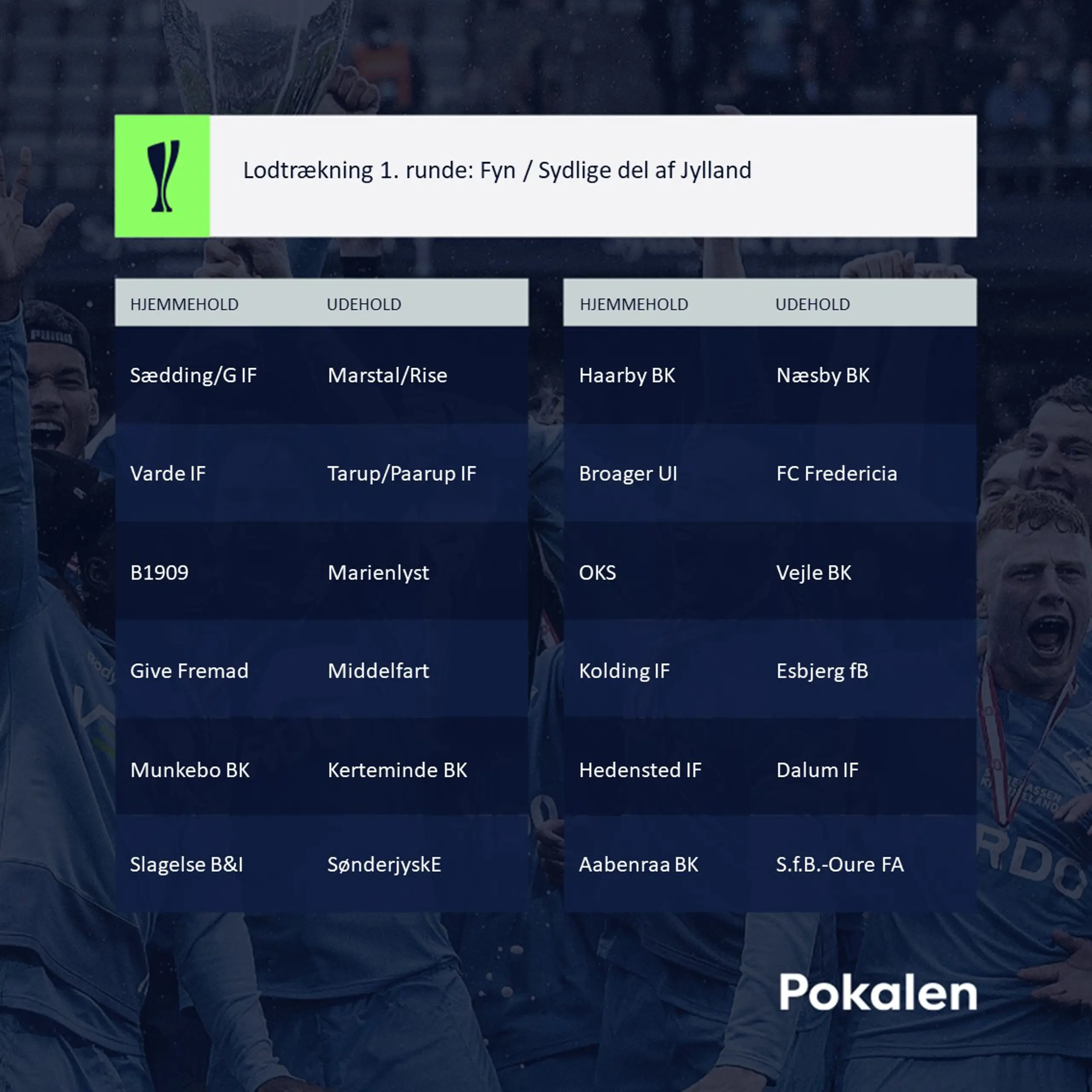5. juli 2022 Så blev der trukket lod til 1. runde i Pokalen – se alle kampene her. Kampene afvikles i dagene 2. – 4. august, kampprogrammet er klar i starten af næste uge.