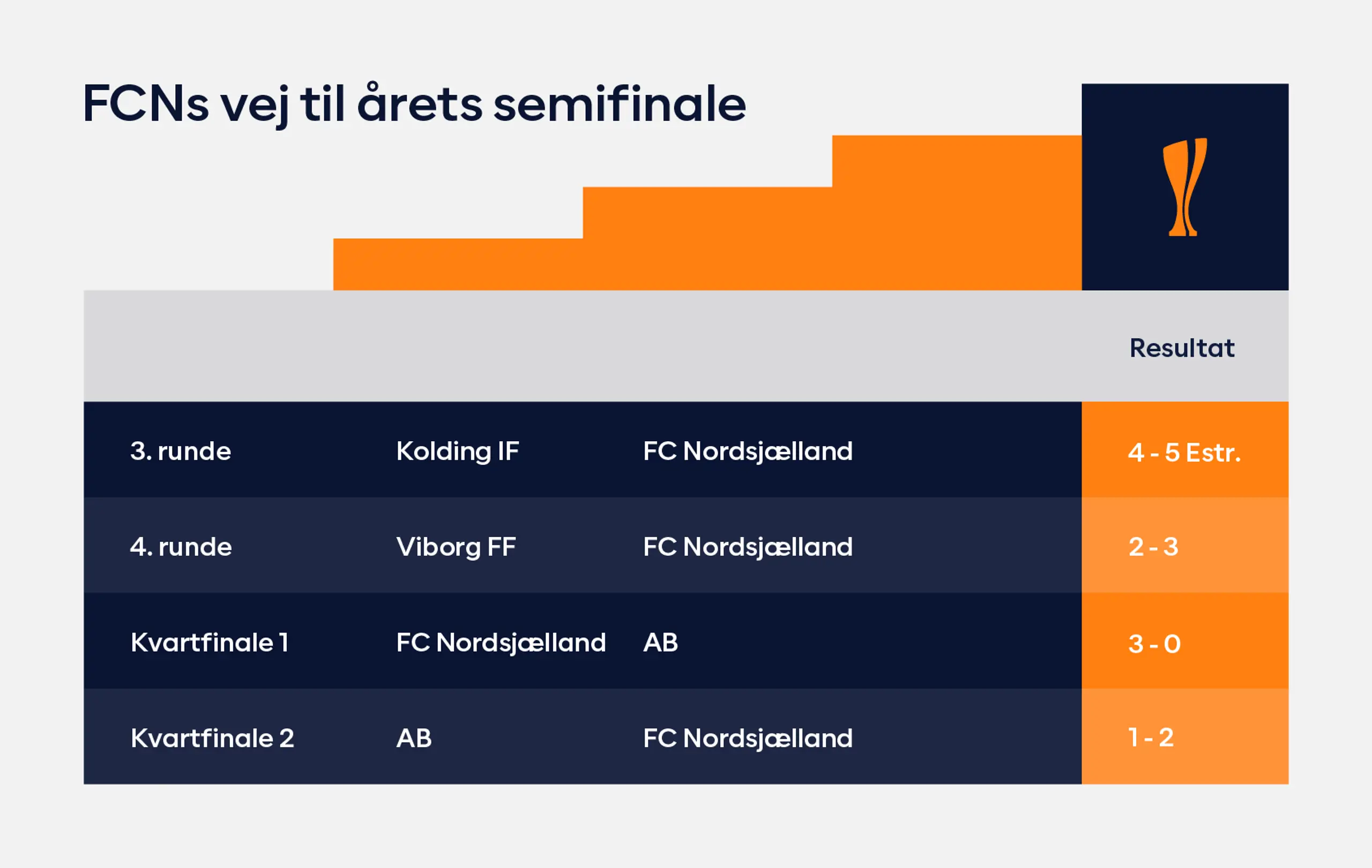 FC Nordsjællands vej til sæsonens semifinaler i Oddset Pokalen har ikke været problemfri. Tværtimod faktisk. Allerede da klubben trådte ind i tredje runde var det ved at gå galt, da man gæstede Kolding IF fra den næstbedste række.